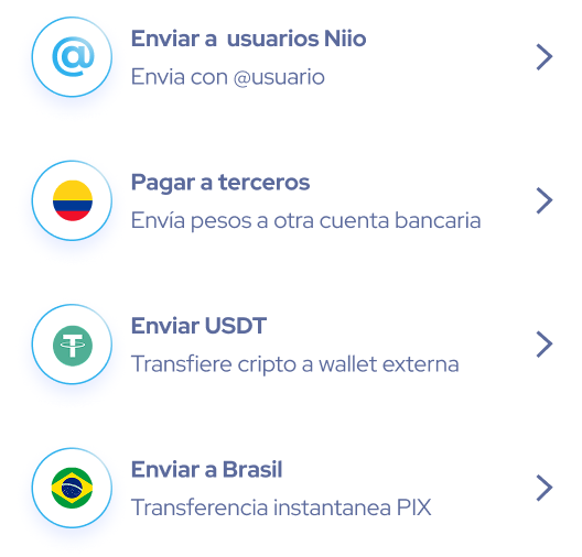 NiioPay es una plataforma financiera multimoneda que conecta tu dinero tradicional y cripto. Puedes mover, pagar, recargar y gestionar todo desde un solo ecosistema, rápido y sin fricciones.
